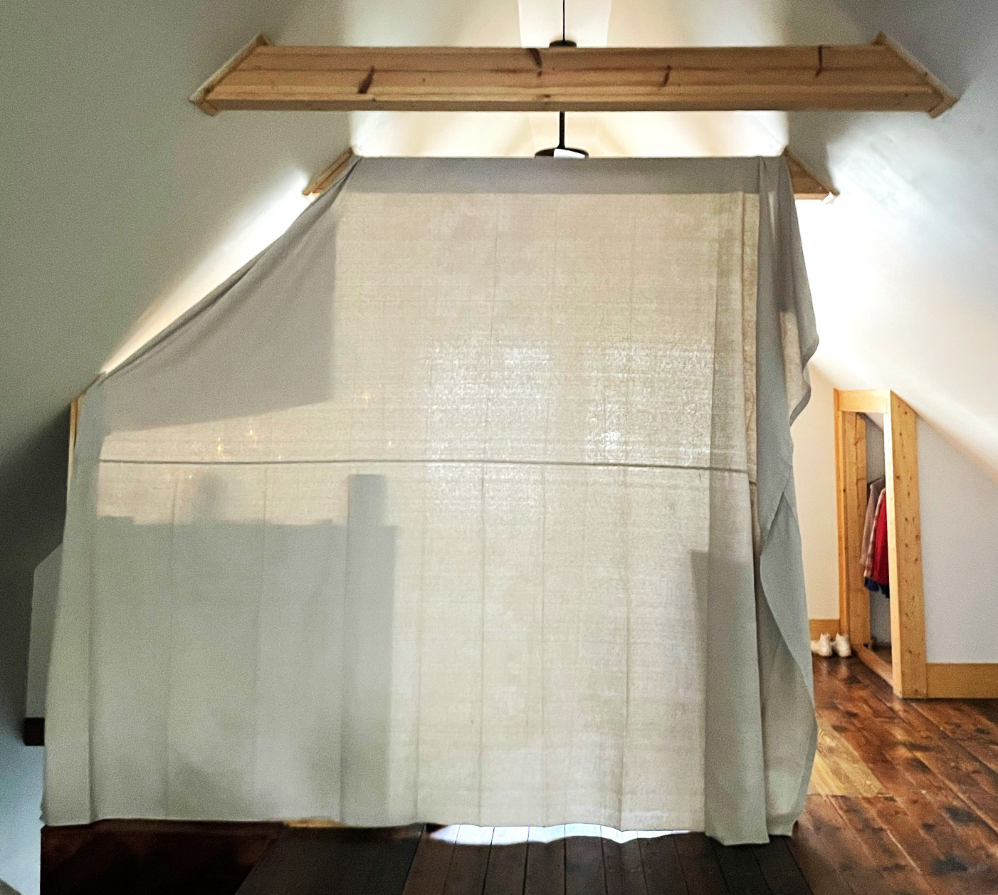 I had a drop cloth hanging in my studio where I lived for the summer to keep the room cool and used this as material for a sample jacket.